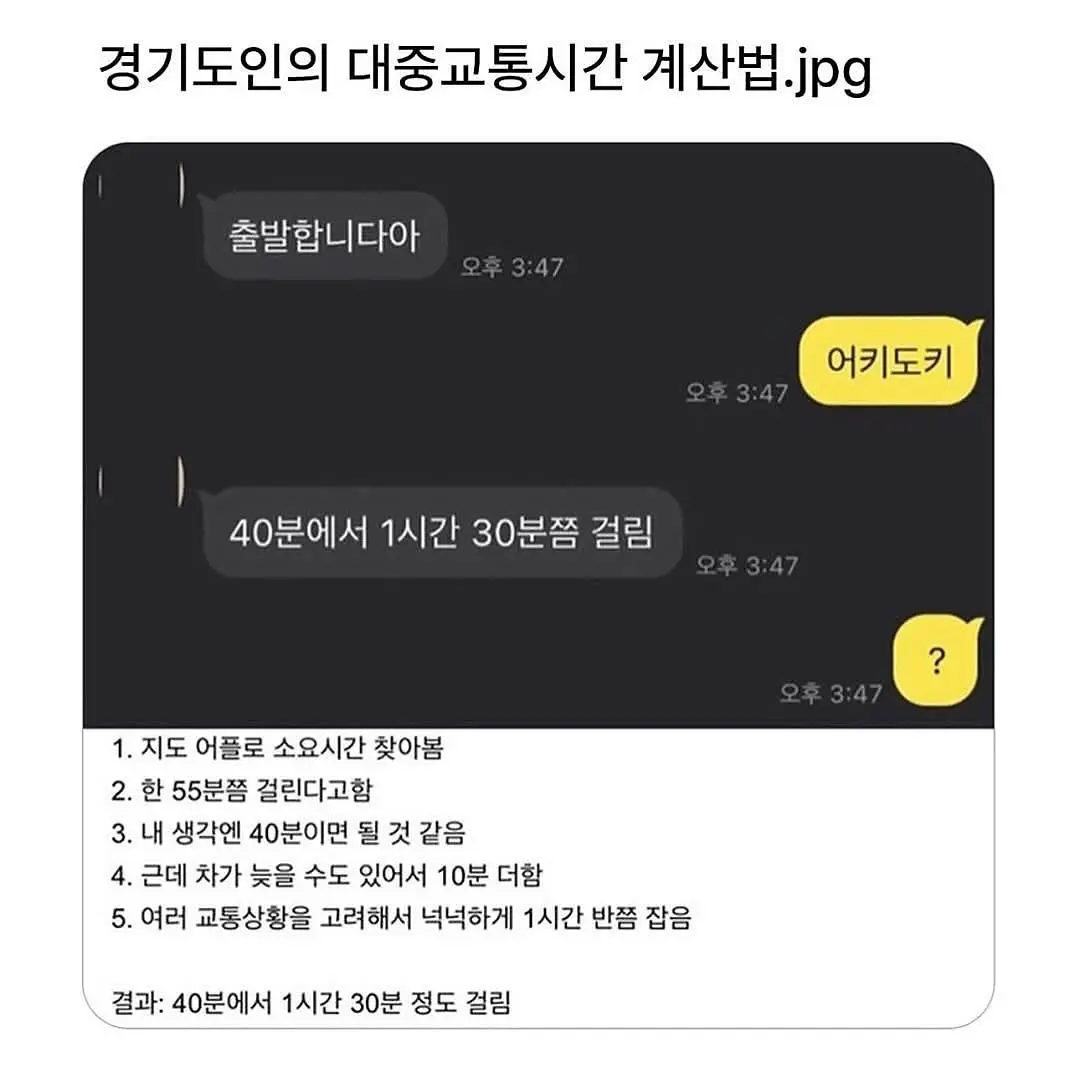 경기도 사람의 이동시간 계산법
