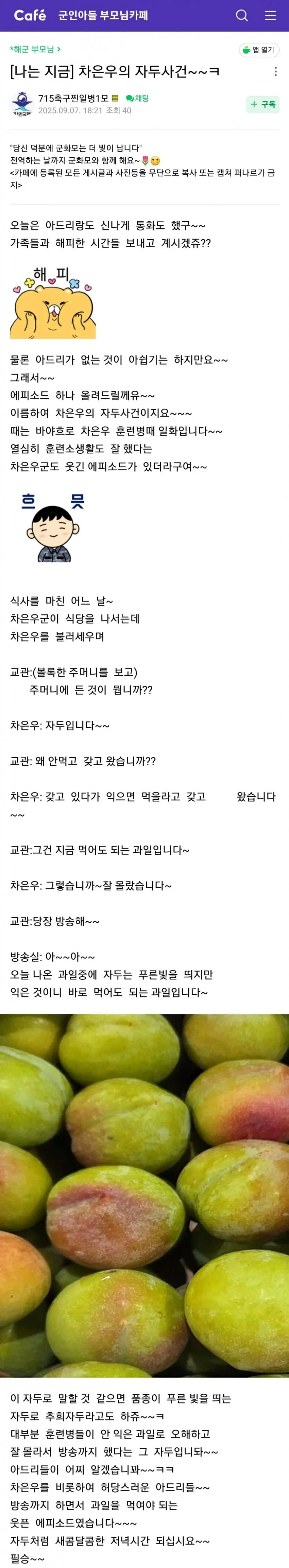차은우 훈련병때 있었다는 자두사건
