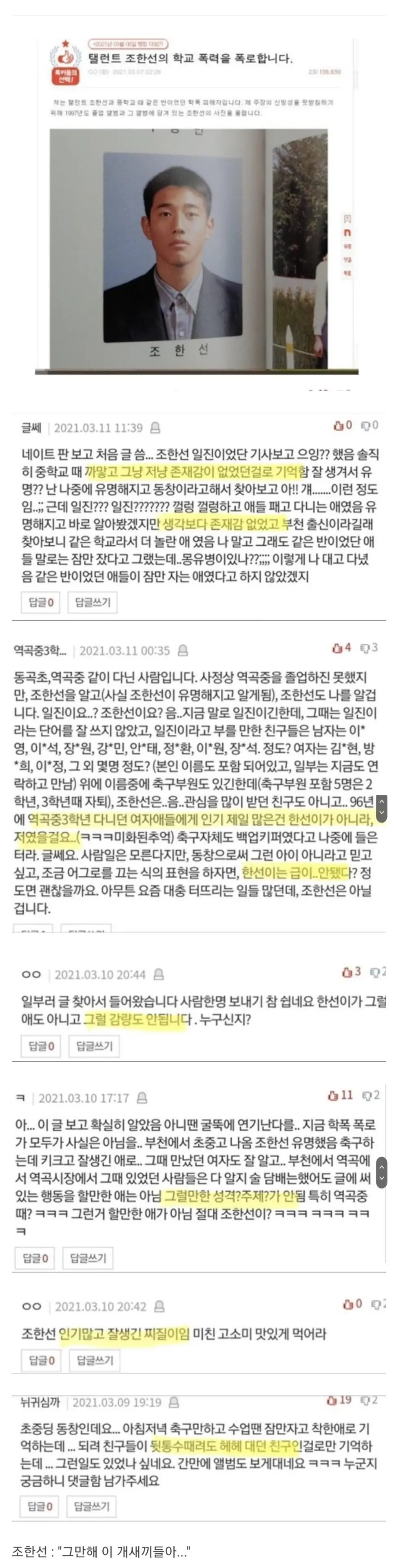 연예인 학폭루머 해명 레전드