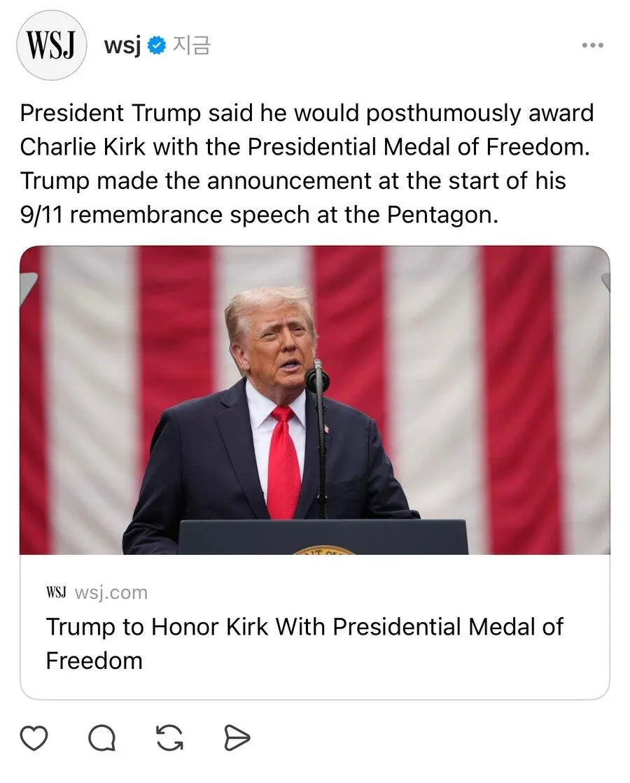 찰리 커크에게 대통령 명예 자유훈장 수여