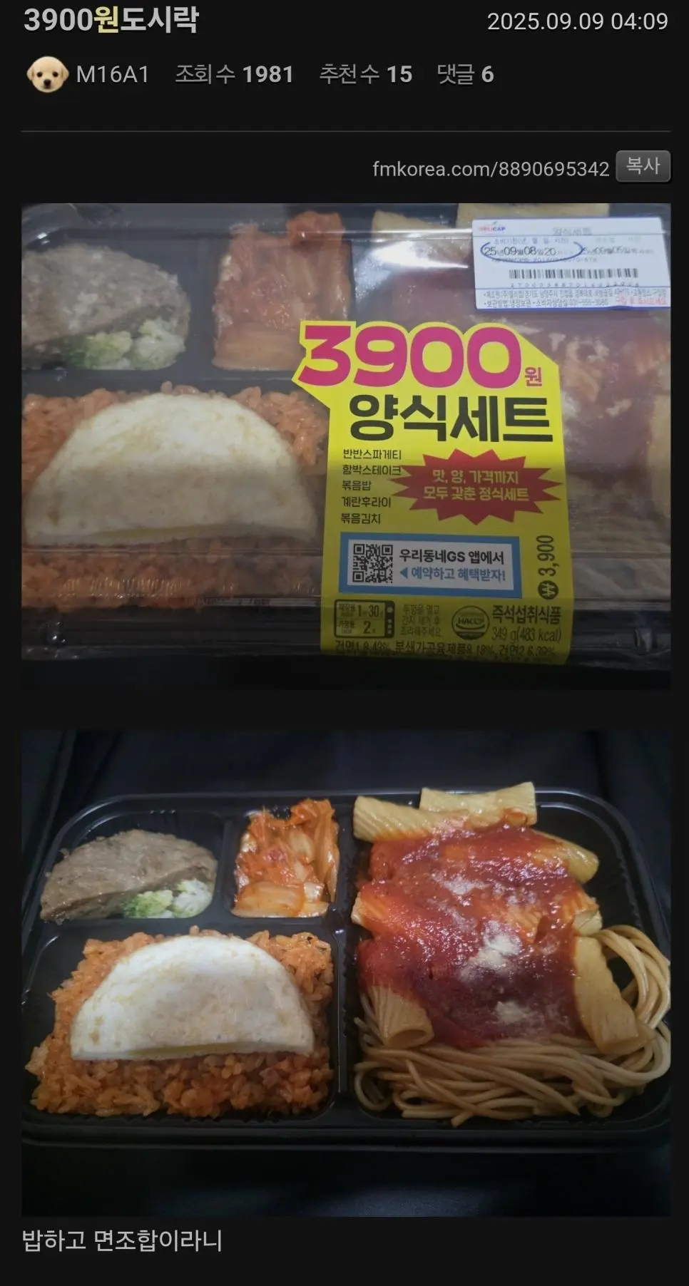 편의점 양식 도시락 3,900원 호불호