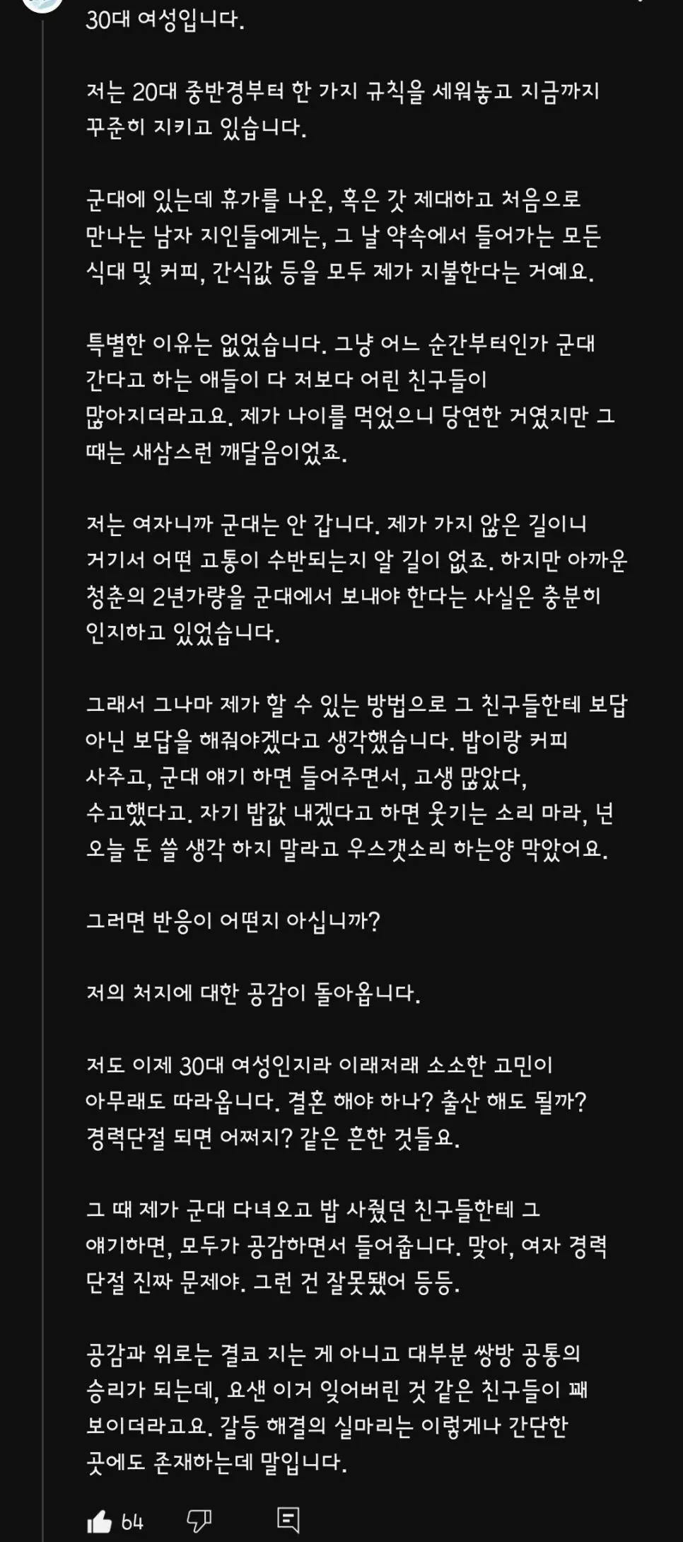 군대 간 남자에게 밥사주고 공감해준 여자에게 돌아온것