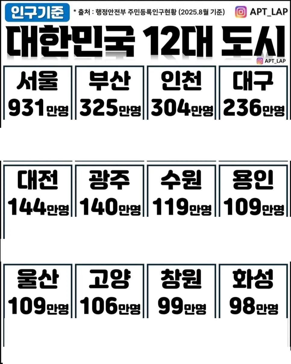 대한민국 12대 도시(인구기준)