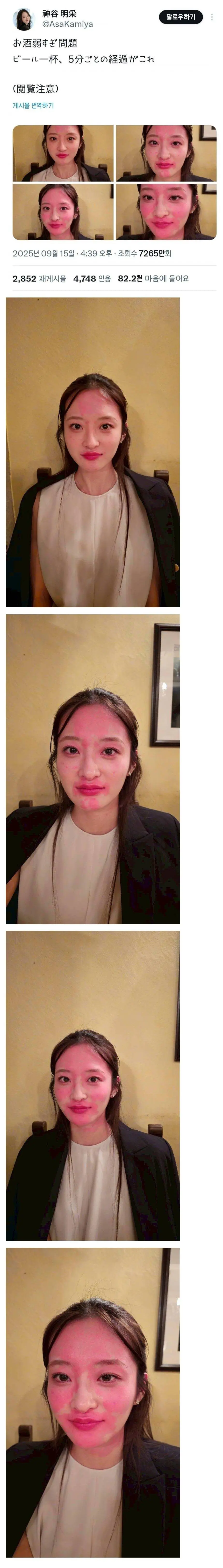 맥주 1잔 마시고 5분마다의 경과 사진