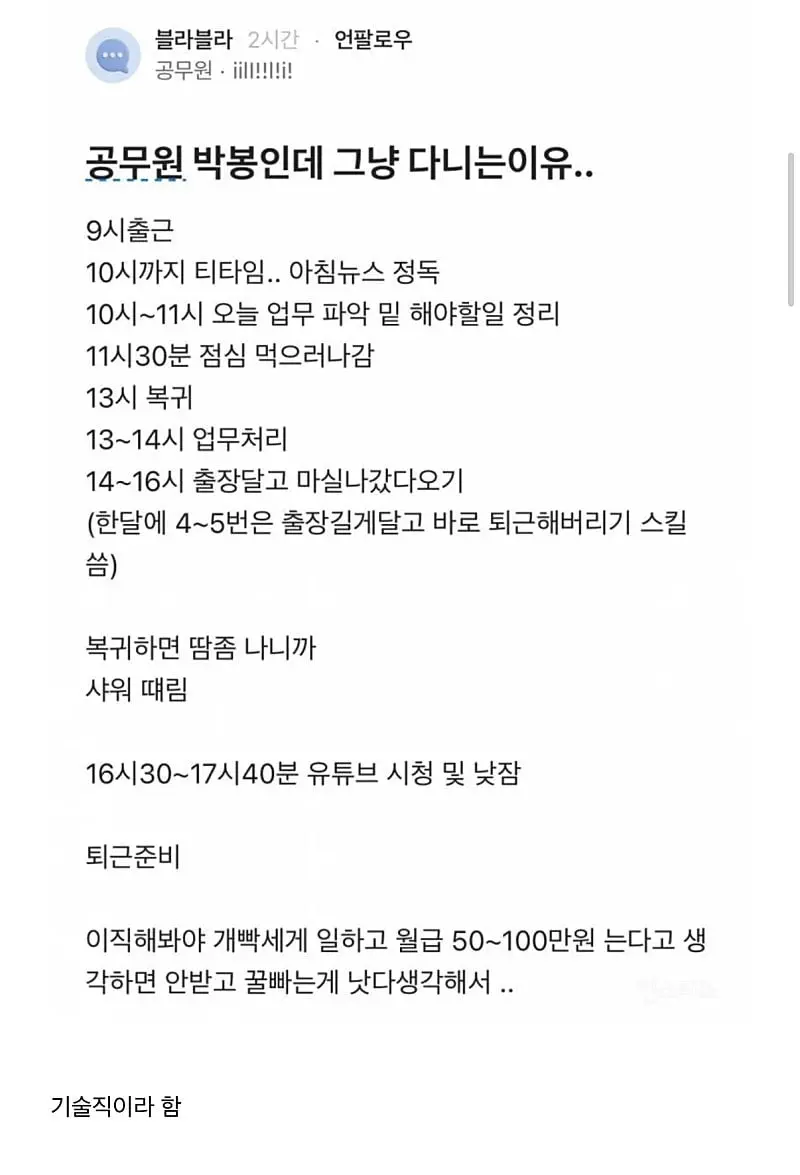 공무원 박봉인데 계속 다니는 이유