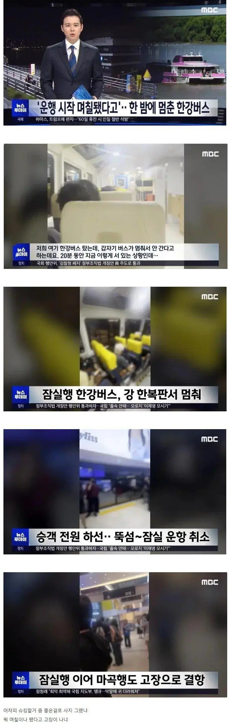 벌써 한강 한복판에 고장난 한강 버스!!!!