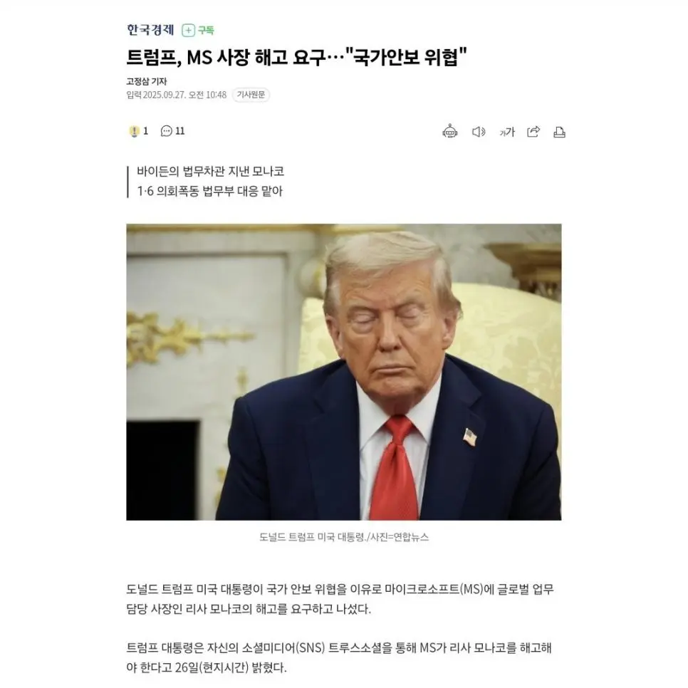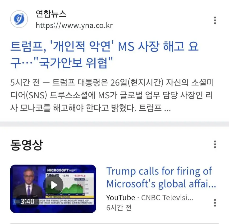 트럼프, "마이크로소프트 사장 해고 시켜라"