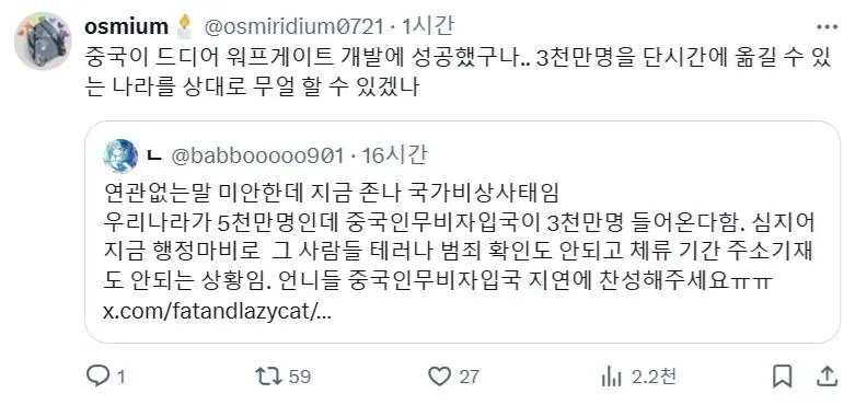 중국인 무비자 입국 허용하면 안되는 이유