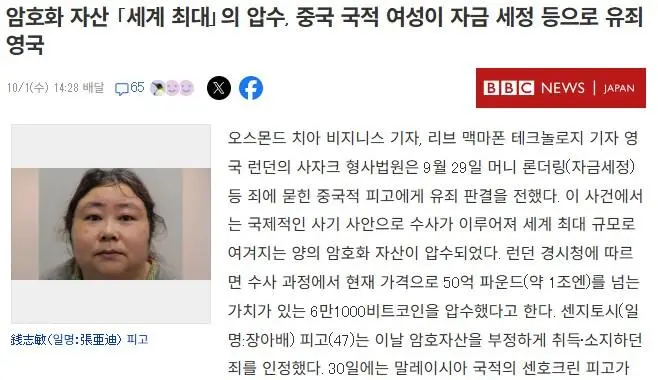 중국 여자 잡았더니 비트코인 6만개가 나옴