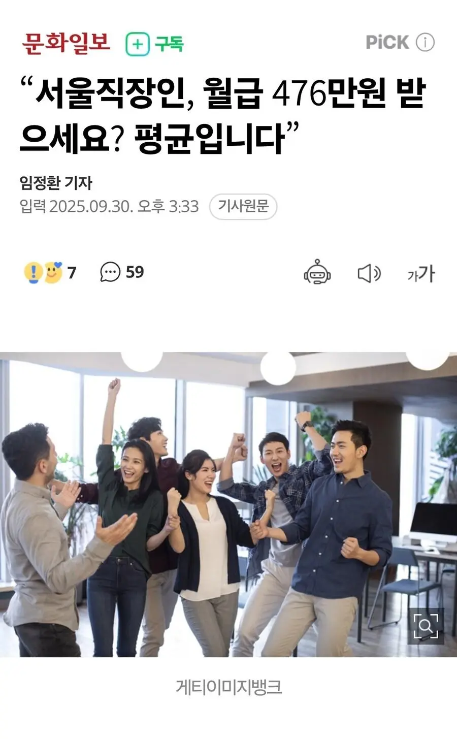 “서울직장인, 월급 476만원 받으세요? 평균입니다”