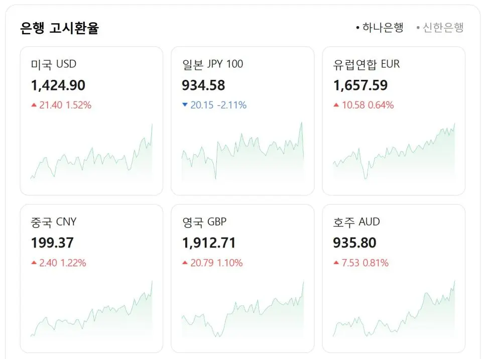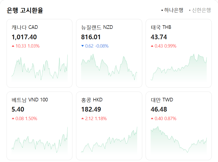 엔과 뉴질랜드 달러 빼고는 전부 올라가는 중