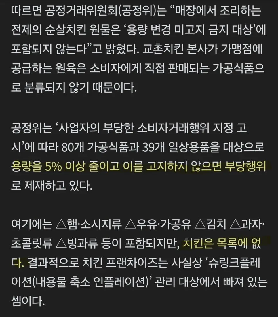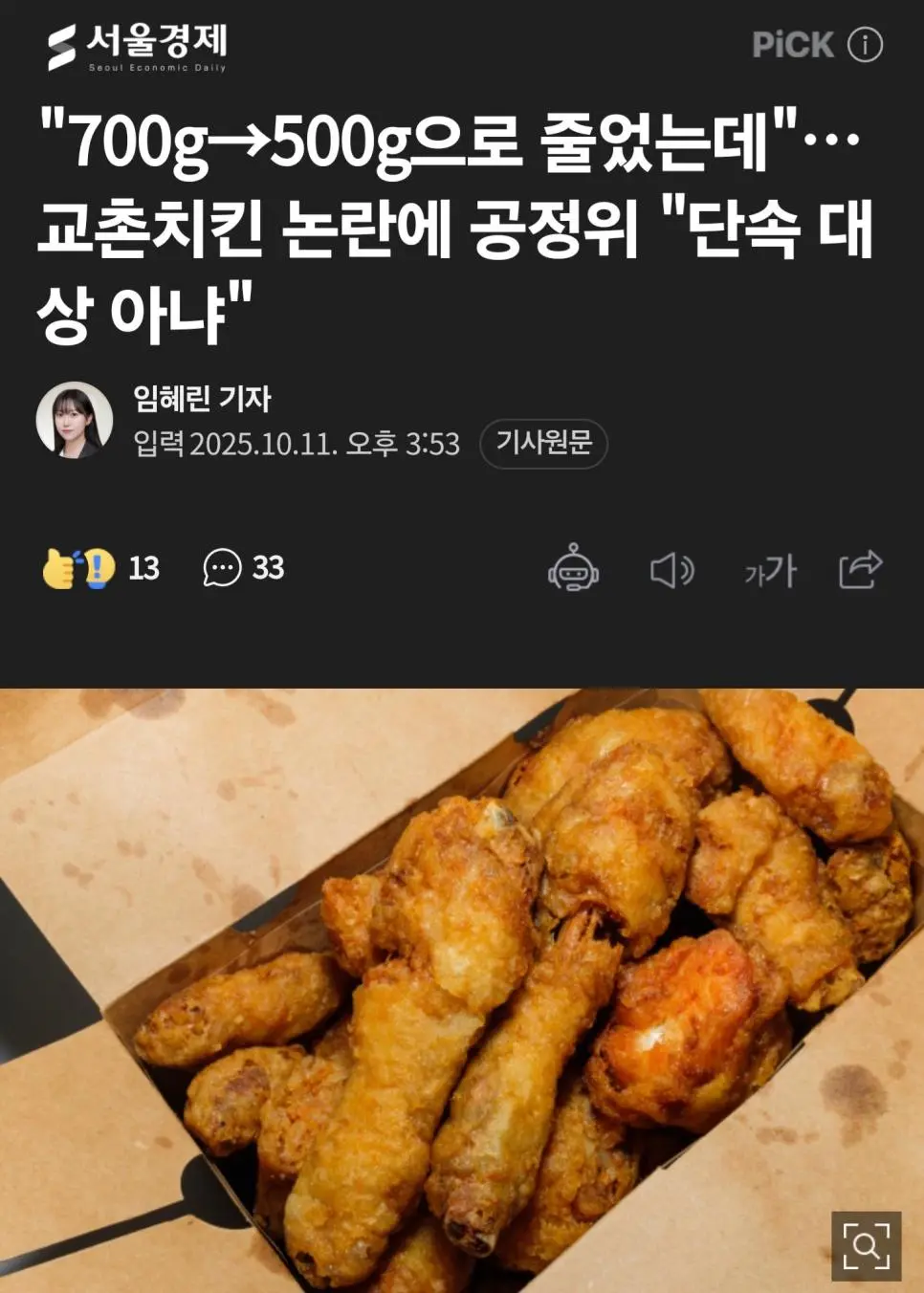 근데 치킨은 관리대상이 아니라서 상관없다고 함