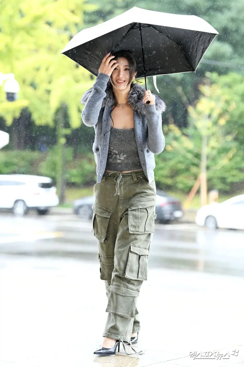 매니저한테 비온다고 대형파라솔 우산을 들게 한 연예인