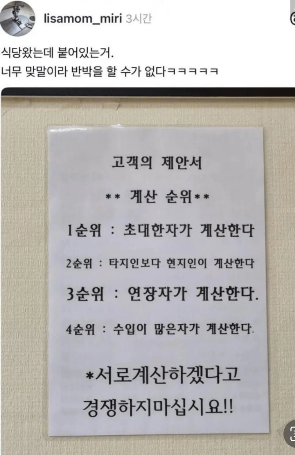 서로 계산시 꿀팁 주는 식당 ㅋㅋㅋ