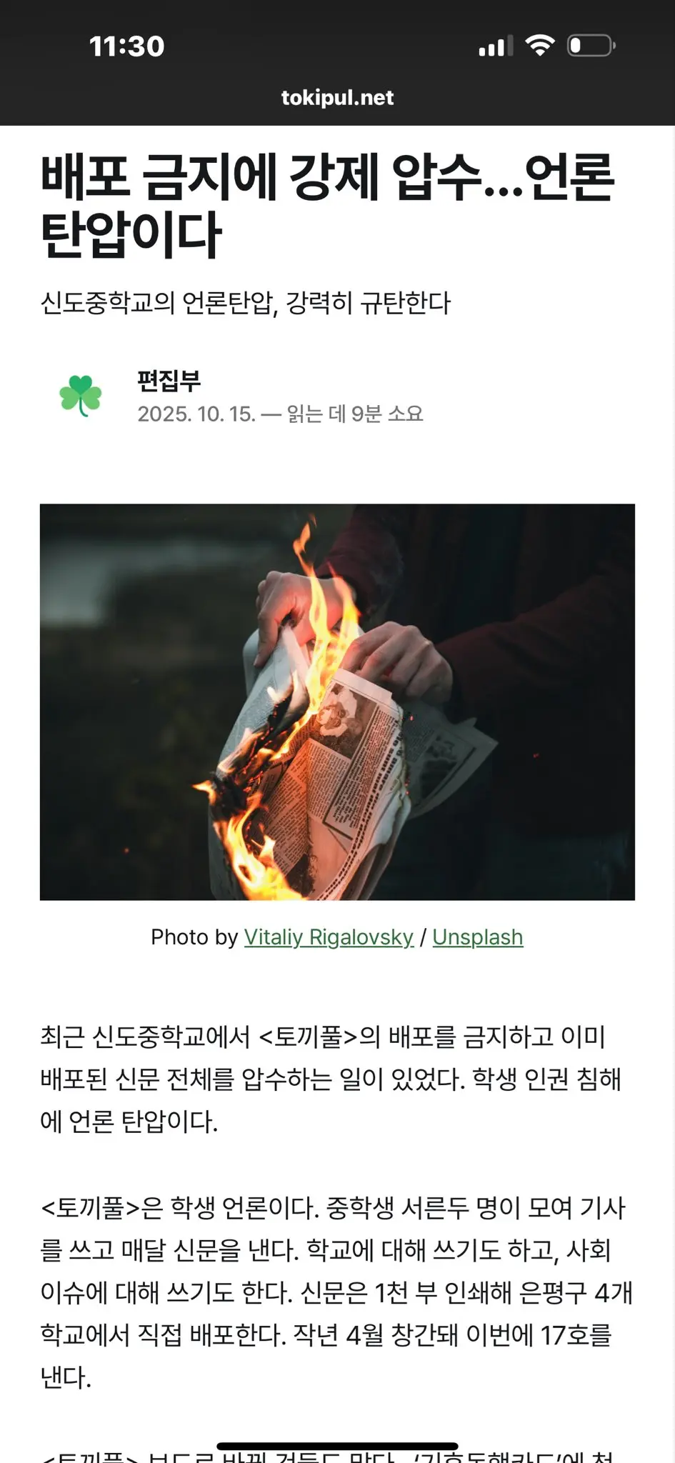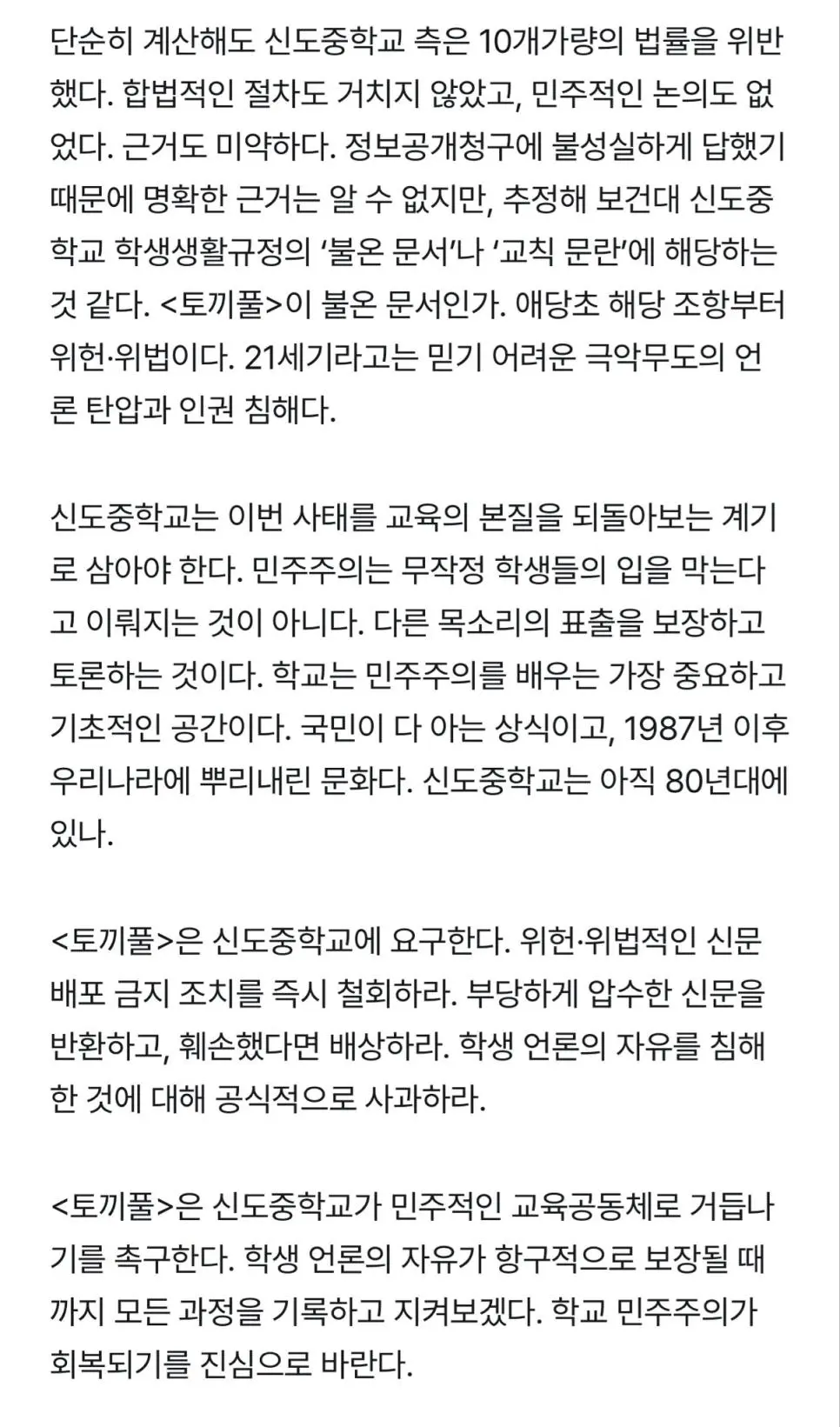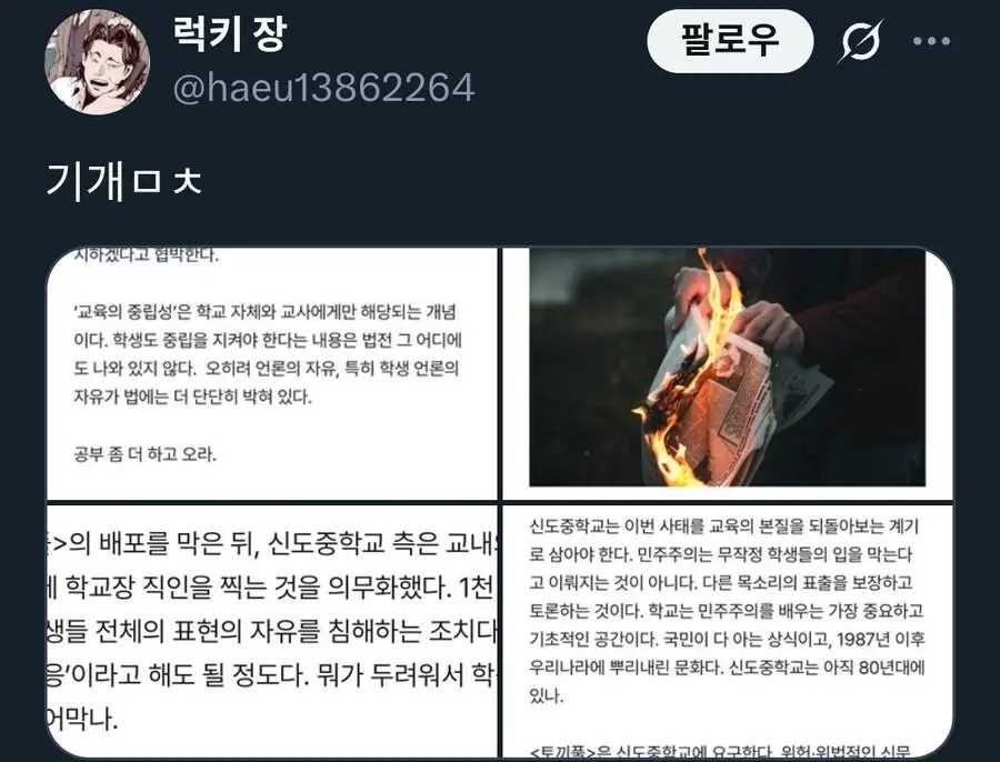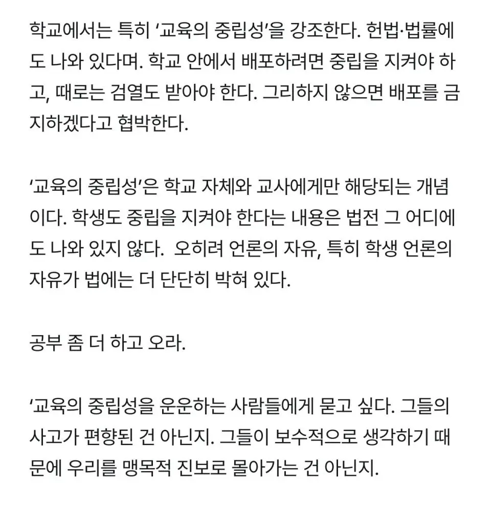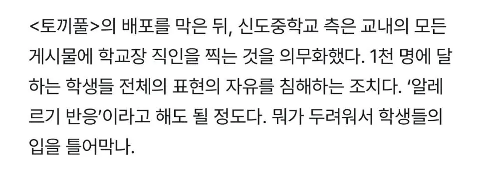 학생들이 만든 신문 배포금지+압수해버린 중학교