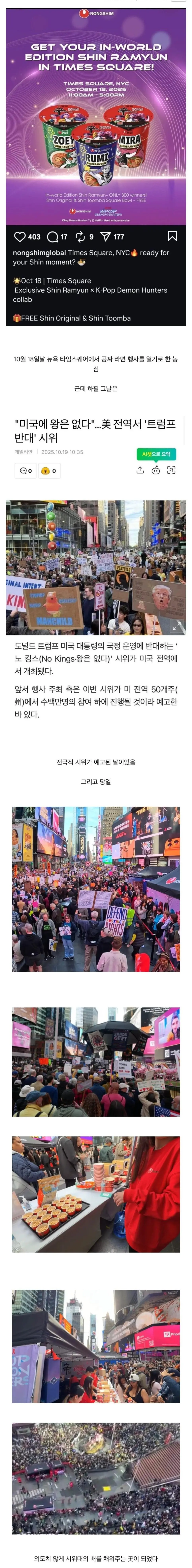 반 트럼프 시위에 얼떨결에 참석한 농심