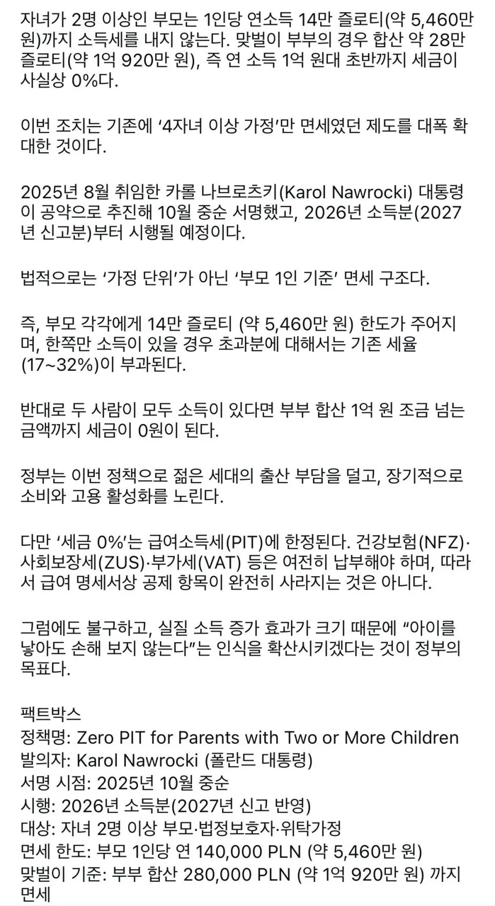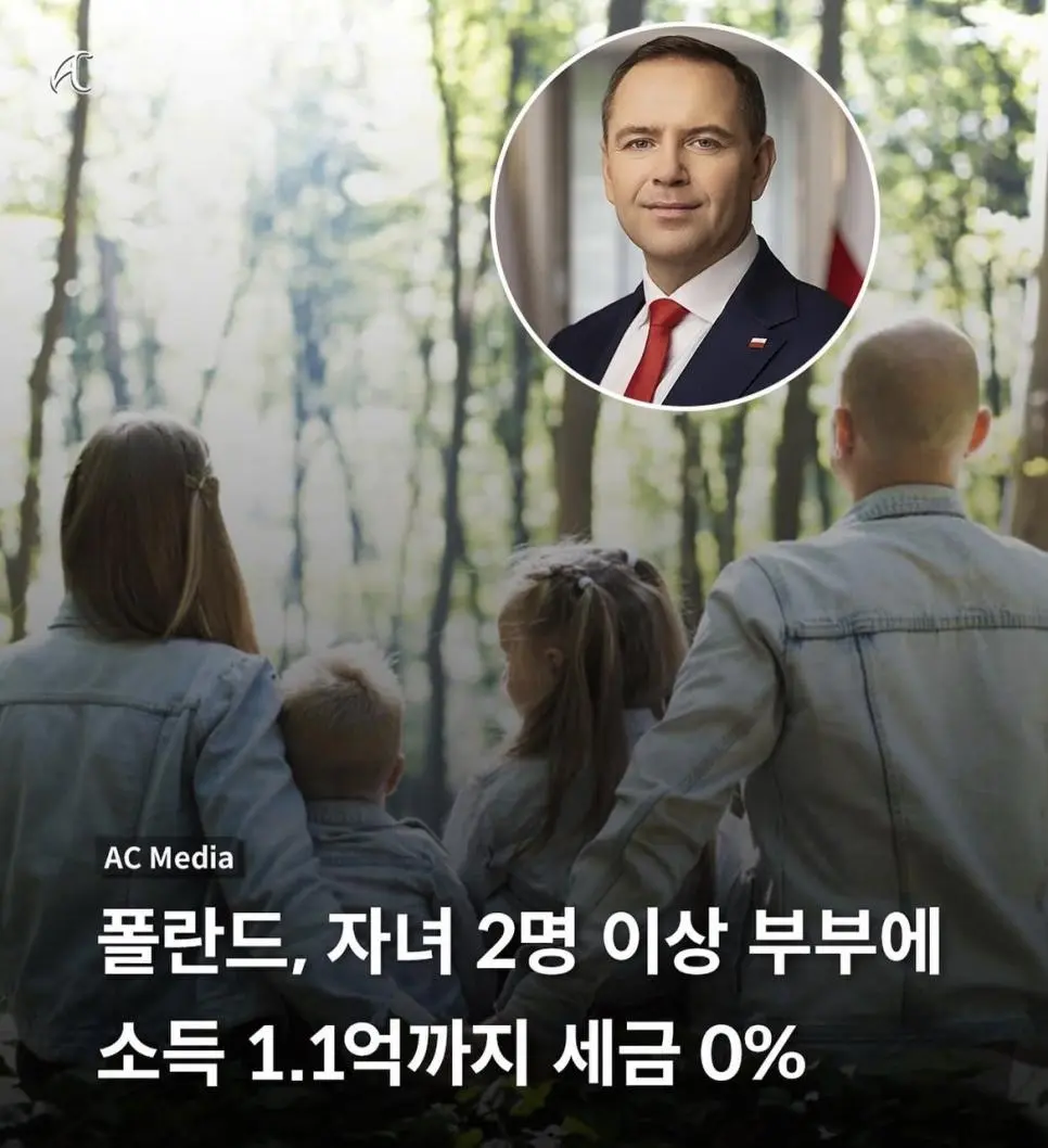 폴란드, 자녀 2명 이상 부부에 소득 1.1억까지 세금 0%