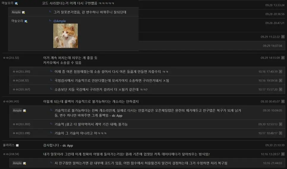 리밴스드(ReVanced)라는 패치프로그램이 있는데 디씨에서 그 프로그램을 다루는 마이너 갤러리가 있음. 거기서 카카오톡 이전버젼으로 되돌리는 패치프로그램을 디씨 유저가 개발