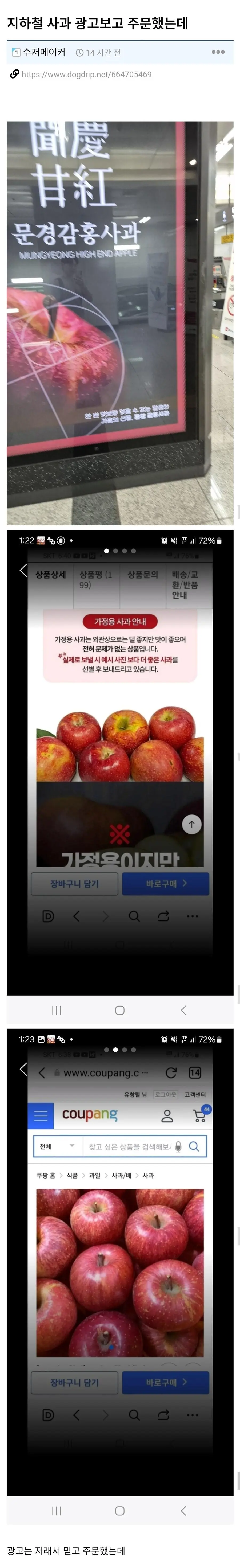 지하철 사과 광고보고 주문했는데 사기당함