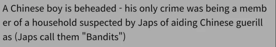 중국인 소년의 가족 일원이 항일 게릴라라는 의혹을 받음