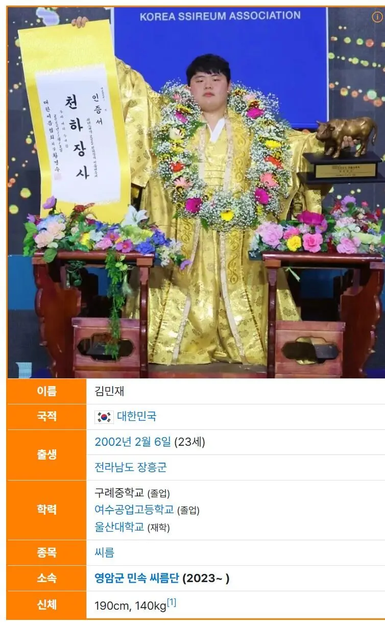 역대급 재능이라는 2002년생 씨름선수 김민재
