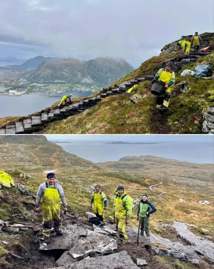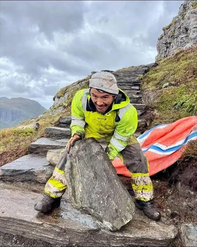 자국의 방문객들 많은 산들에 돌길 깔아달라고 고용.