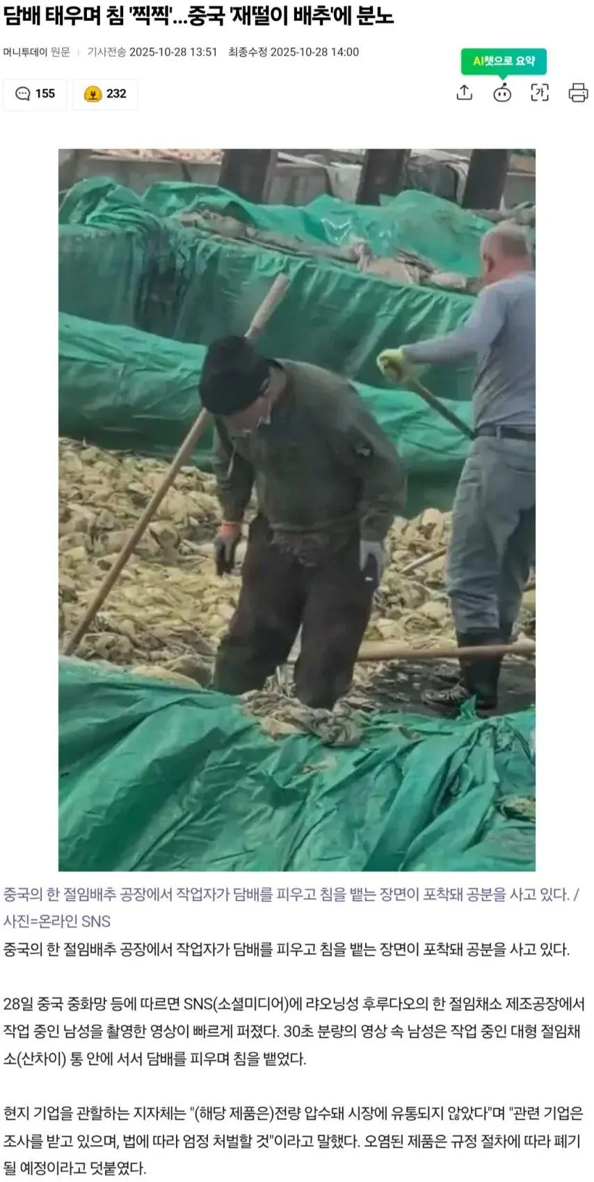 중국 절임배추 공장 근황