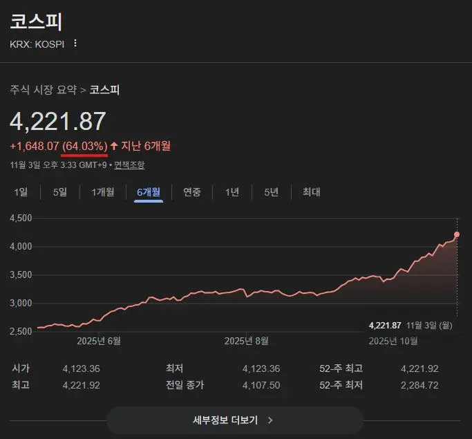 코스피 6개월간 64% 상승