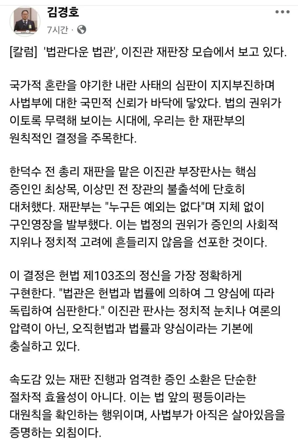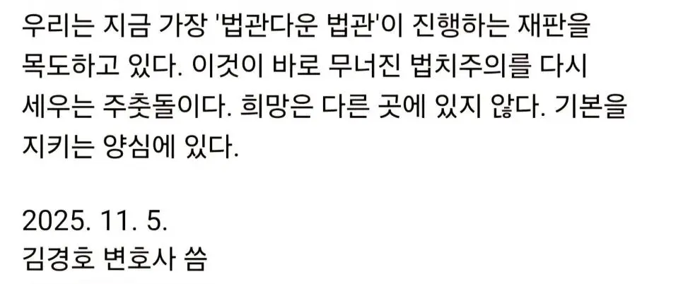 김경호 변호사 "법관다운 법관, 이진관 재판장.."