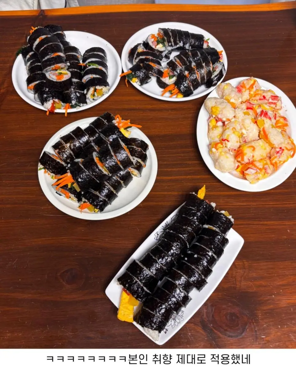 내 동생 8살 이 김밥 말았는데 당근 시금치 비율 뭐니?
