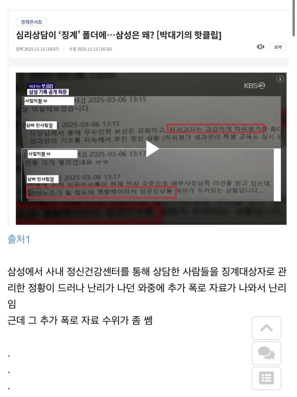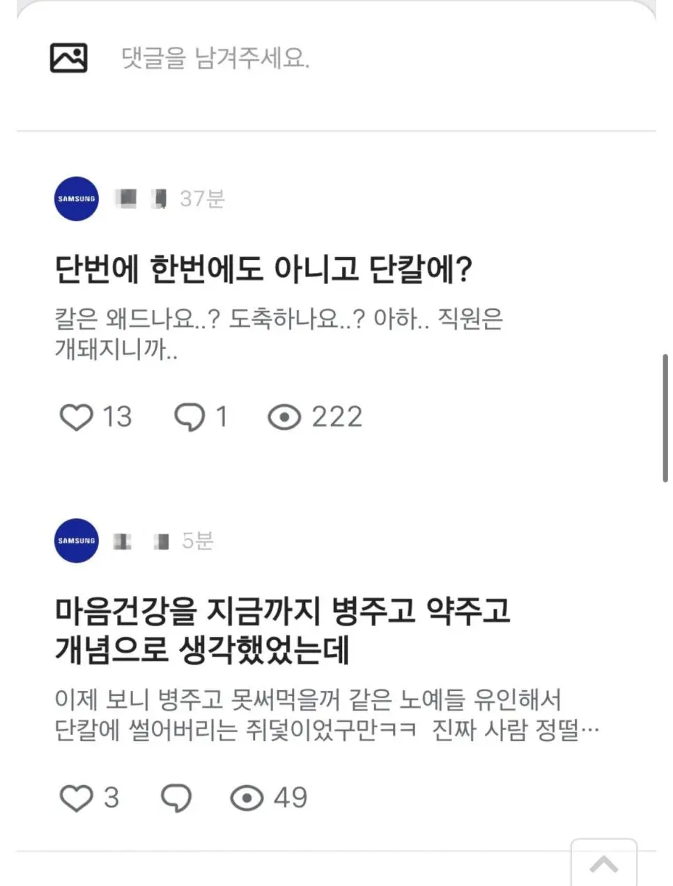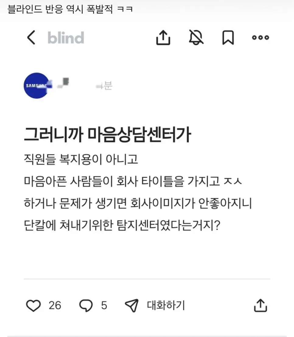 삼성 "정신건강 상담자는 단칼에 끝내야..." 파문