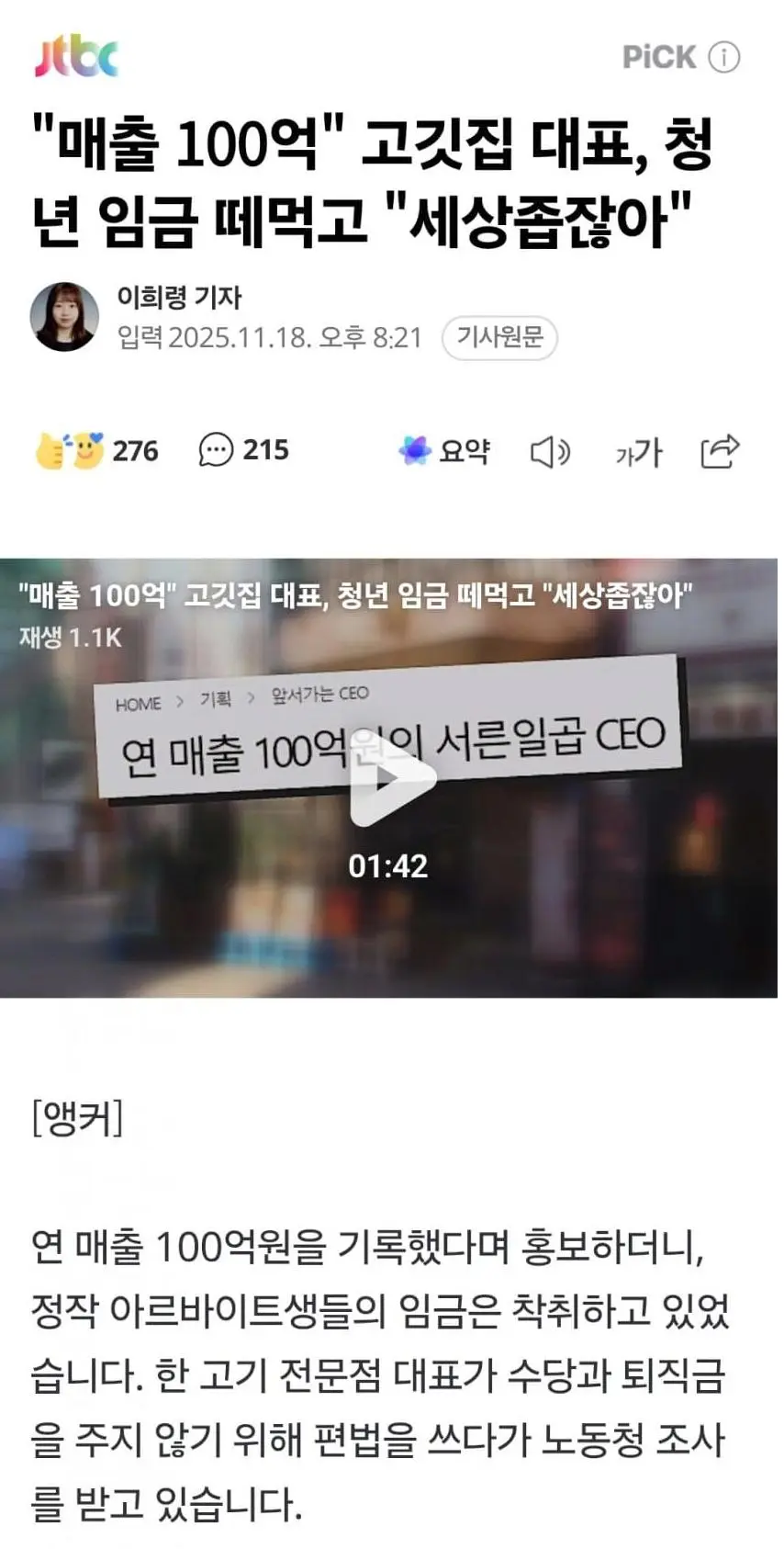 직원 임금 떼먹고 협박한 100억 매출 고깃집 대표