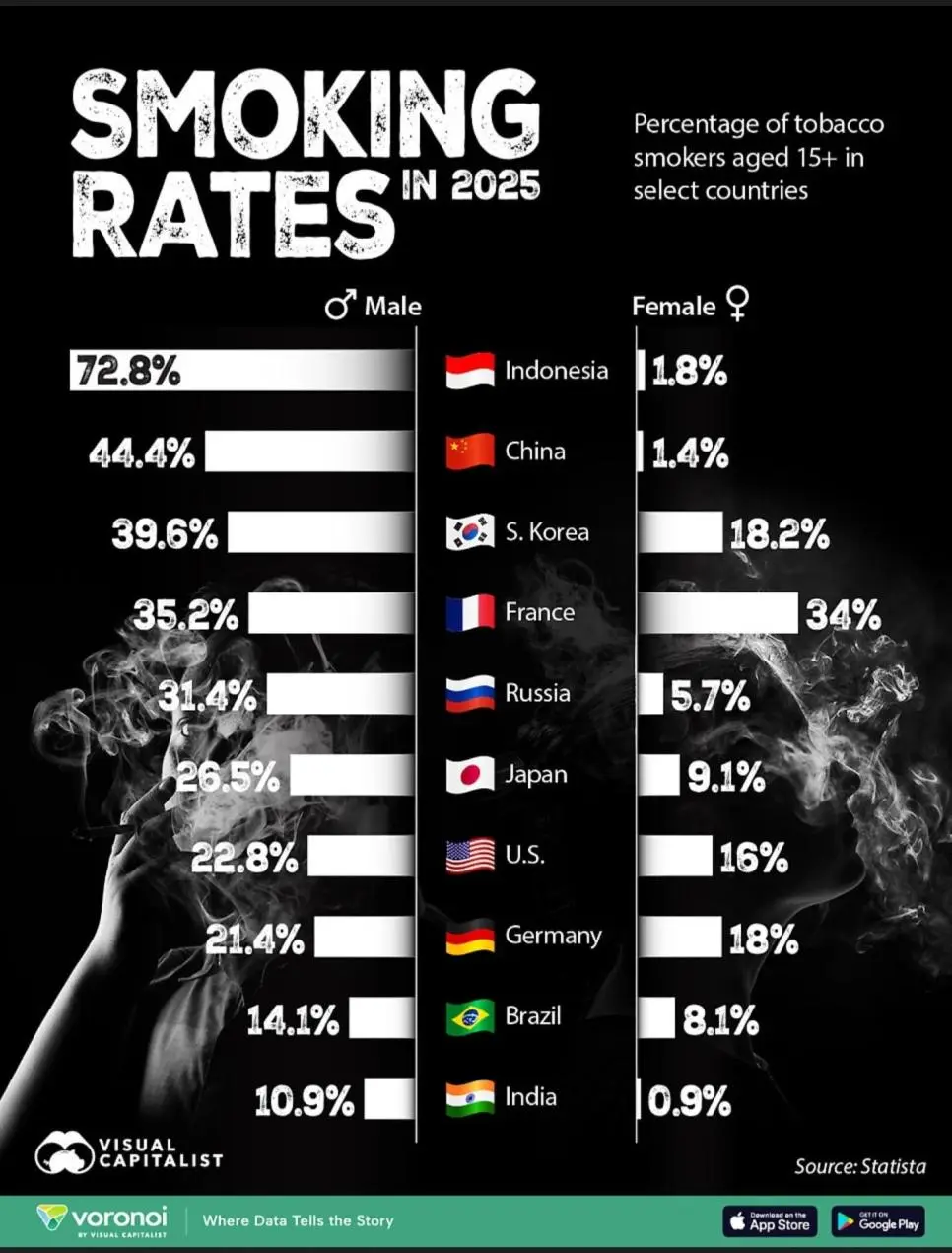 한국이 미국, 일본보다 남녀 모두 흡연율 높음