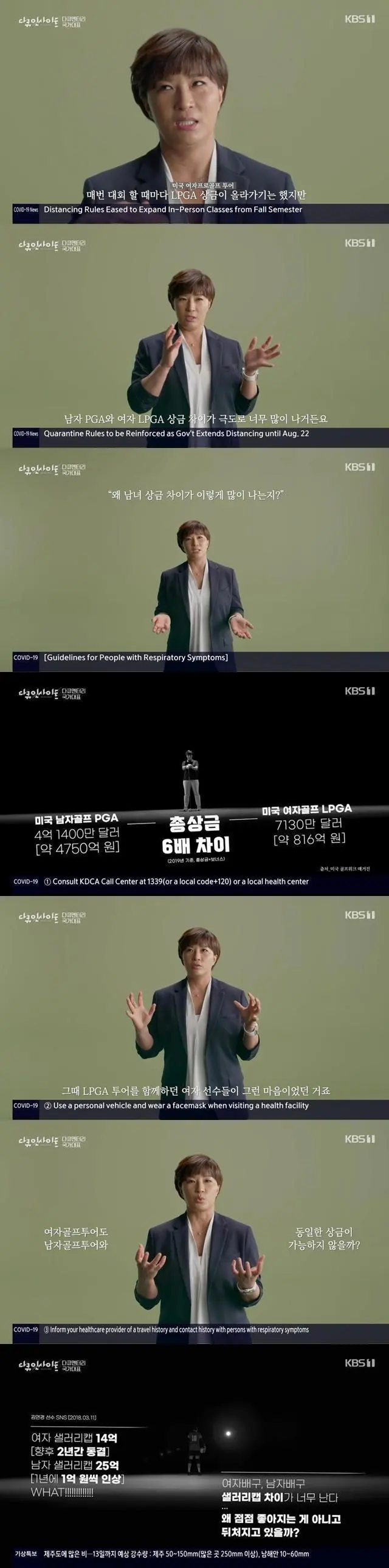 박세리 "남녀 골프대회 상금 차이 의문"