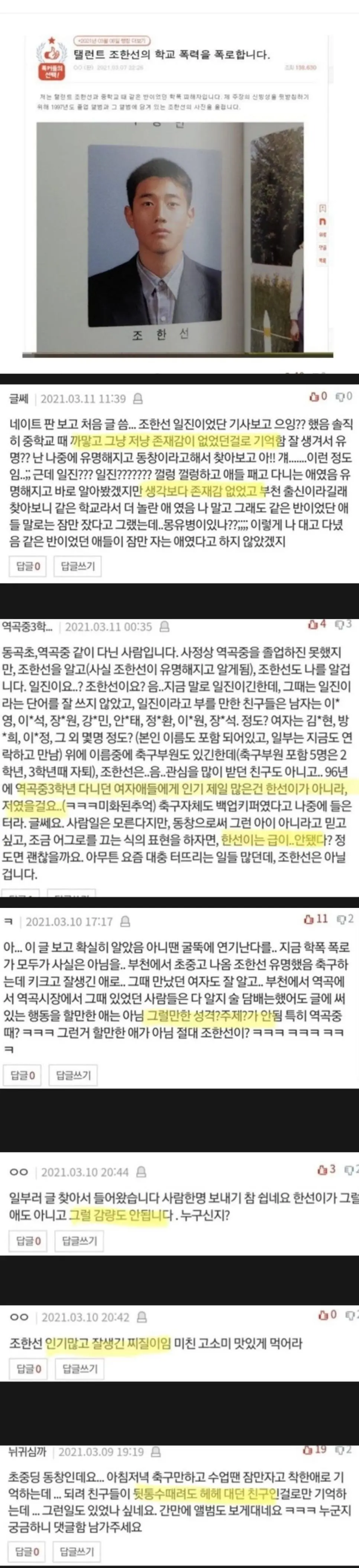 다시 보는 연예인 학폭 폭로 레전드 논란