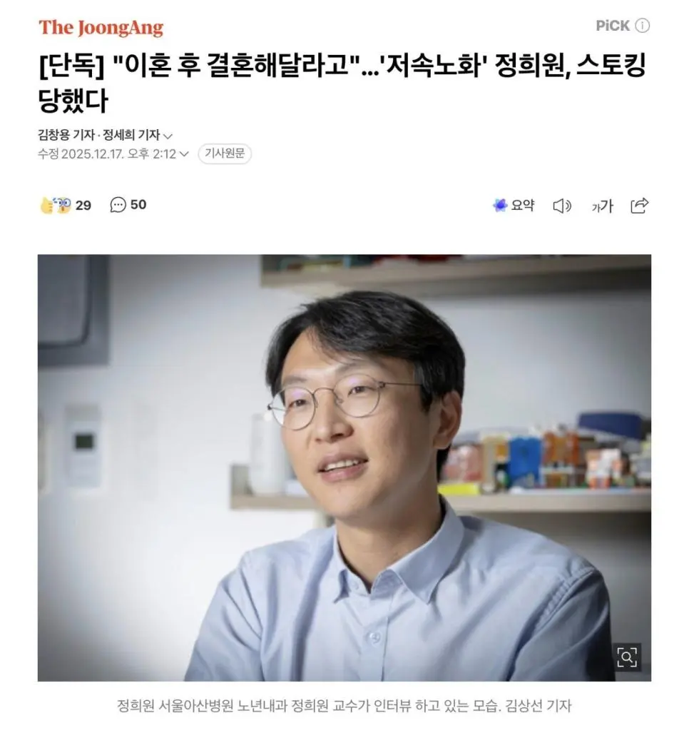 "이혼 후 결혼해달라고"…'저속노화' 정희원, 스토킹 당했다