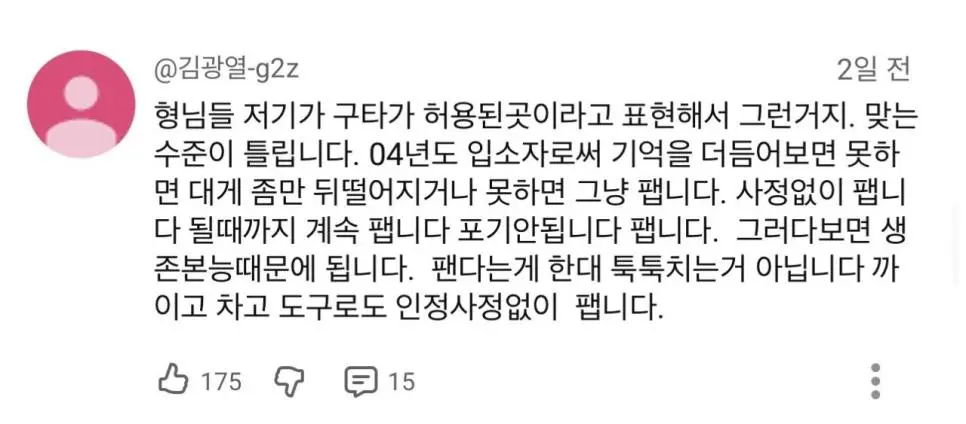 구타로 인해 UDU 퇴교를 한 덱스 유튜브에 UDU 출신이 댓을 달았음
