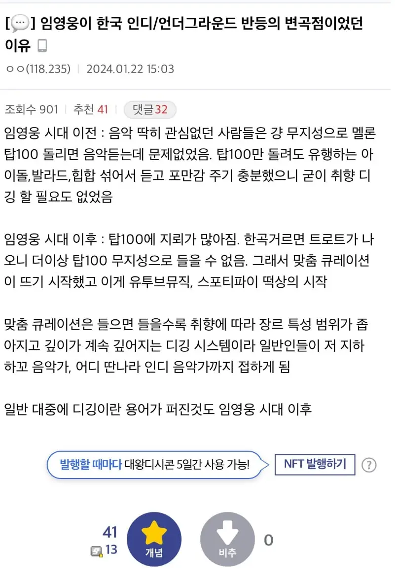 인디/언더그라운드 음악계에 미친 임영웅 영향력 이론