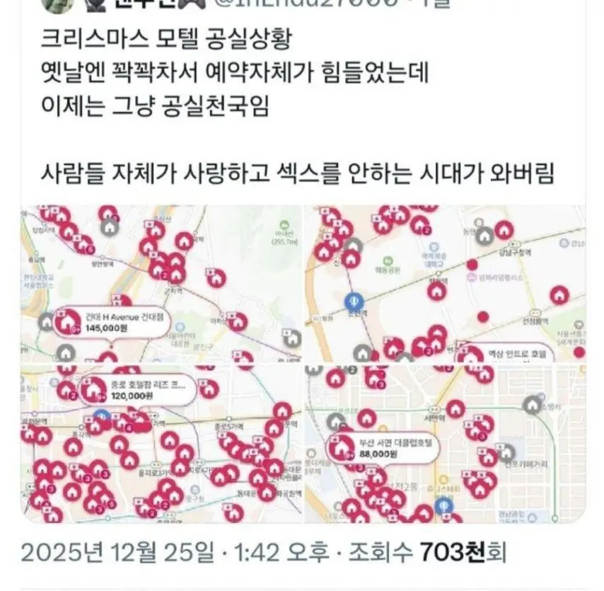이번 크리스마스 모텔 공실률 근황 ㄷㄷ