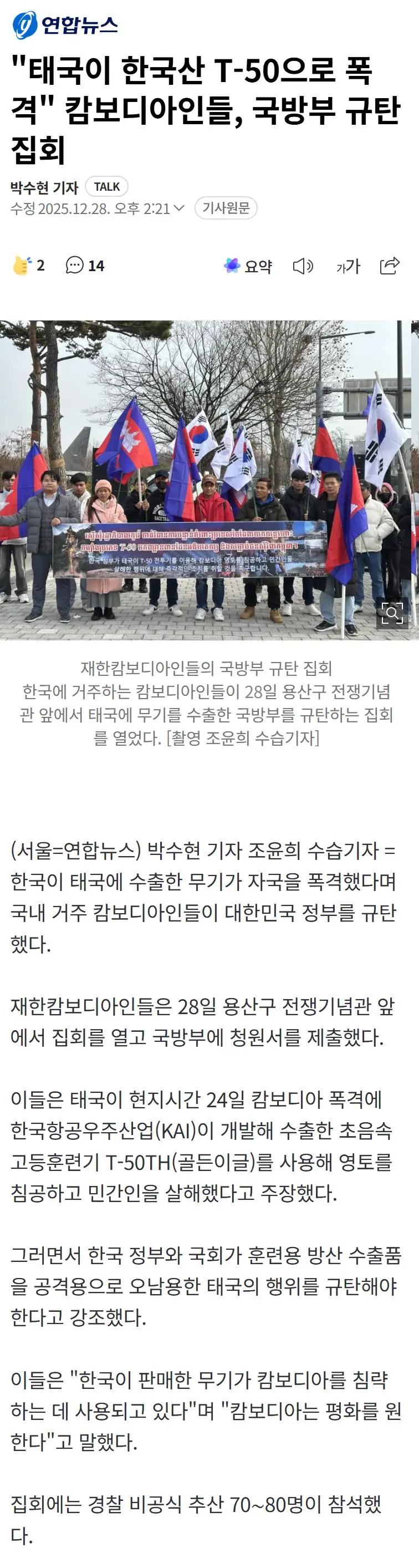 국내 캄보디아인들, 대한민국 국방부를 규탄하기 위해 집회