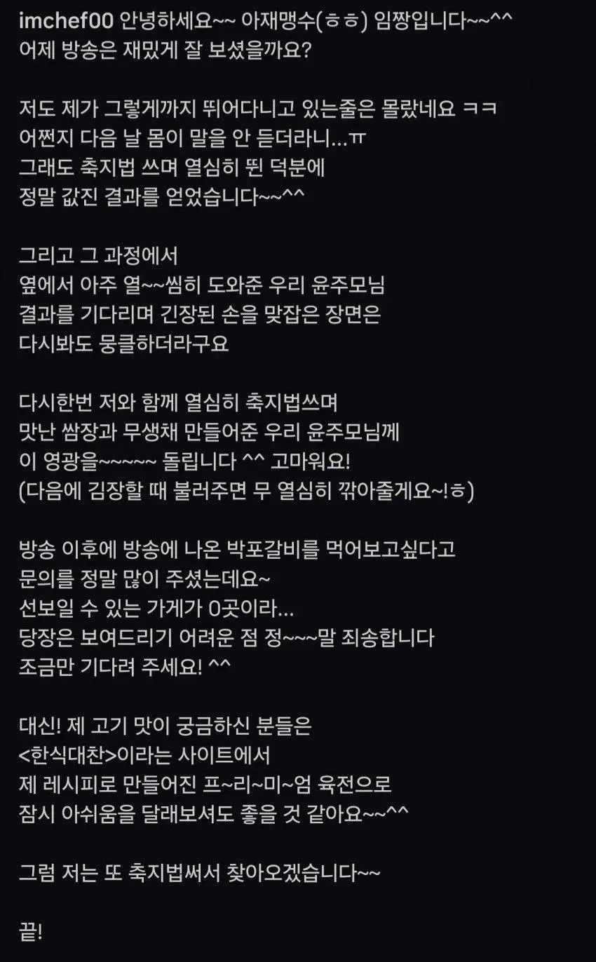 임성근 인스타 글 업로드