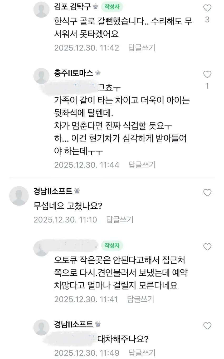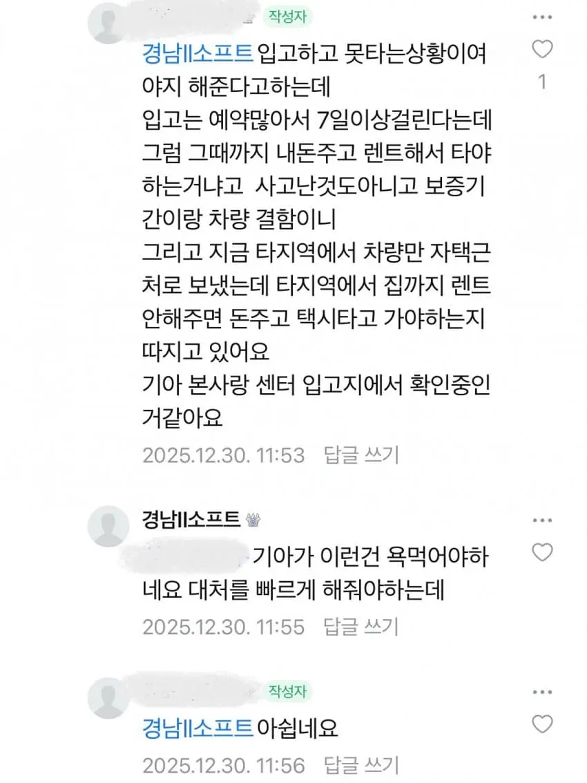 고속도로 한가운데서 한밤중에 ICCU 오류로 EV3가 멈춰버림... 차가 완전히 먹통이되자 견인차가 올때까지 영하8도 한파에 일가족이 고속도로에서 2시간동안이나 벌벌떨면서 대기함 ㄷㄷ 와중에 기아에서는 "사고가 난것도 아니라 대차는 못해준다" 며 거부 결국 차주는 사비로 렌트카 빌리게됐고 4인가족이 몰살당할뻔 했다면서 이를 바득바득 갈고 있음