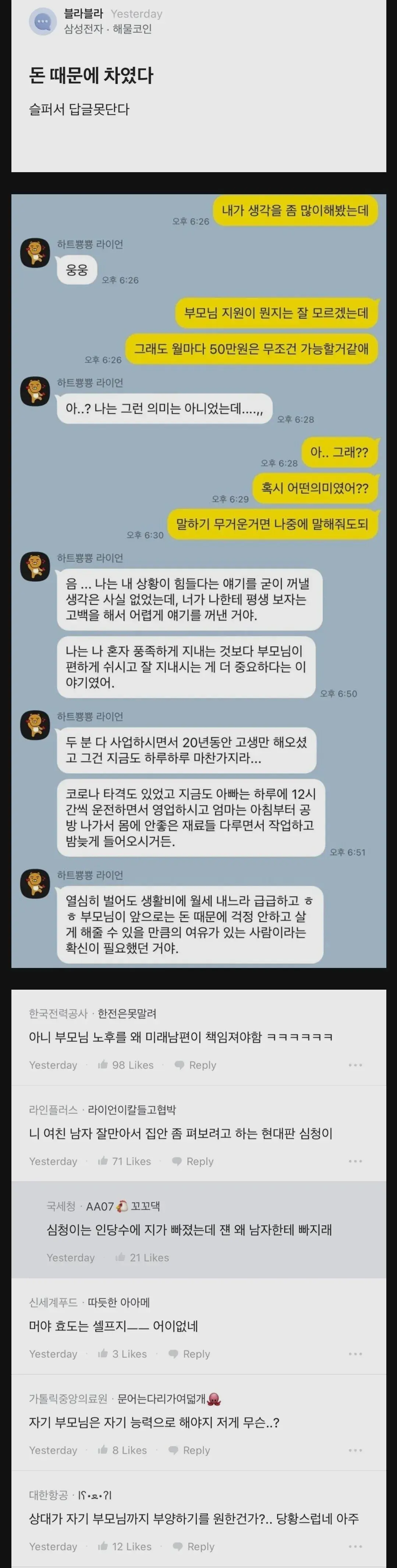 돈 없어서 차인 삼전 블라남 카톡 공개 .blind
