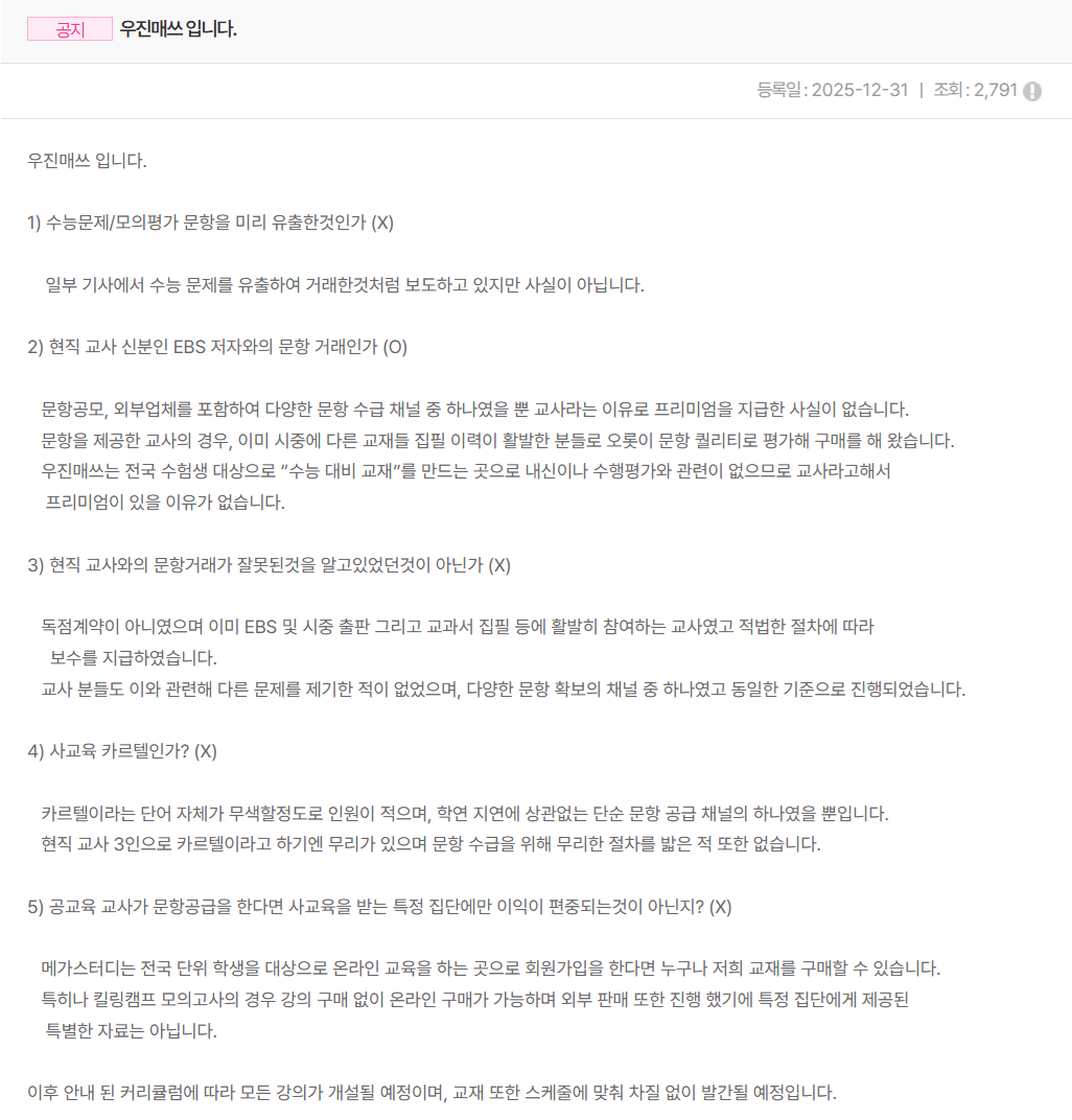 현우진 입장문 업로드