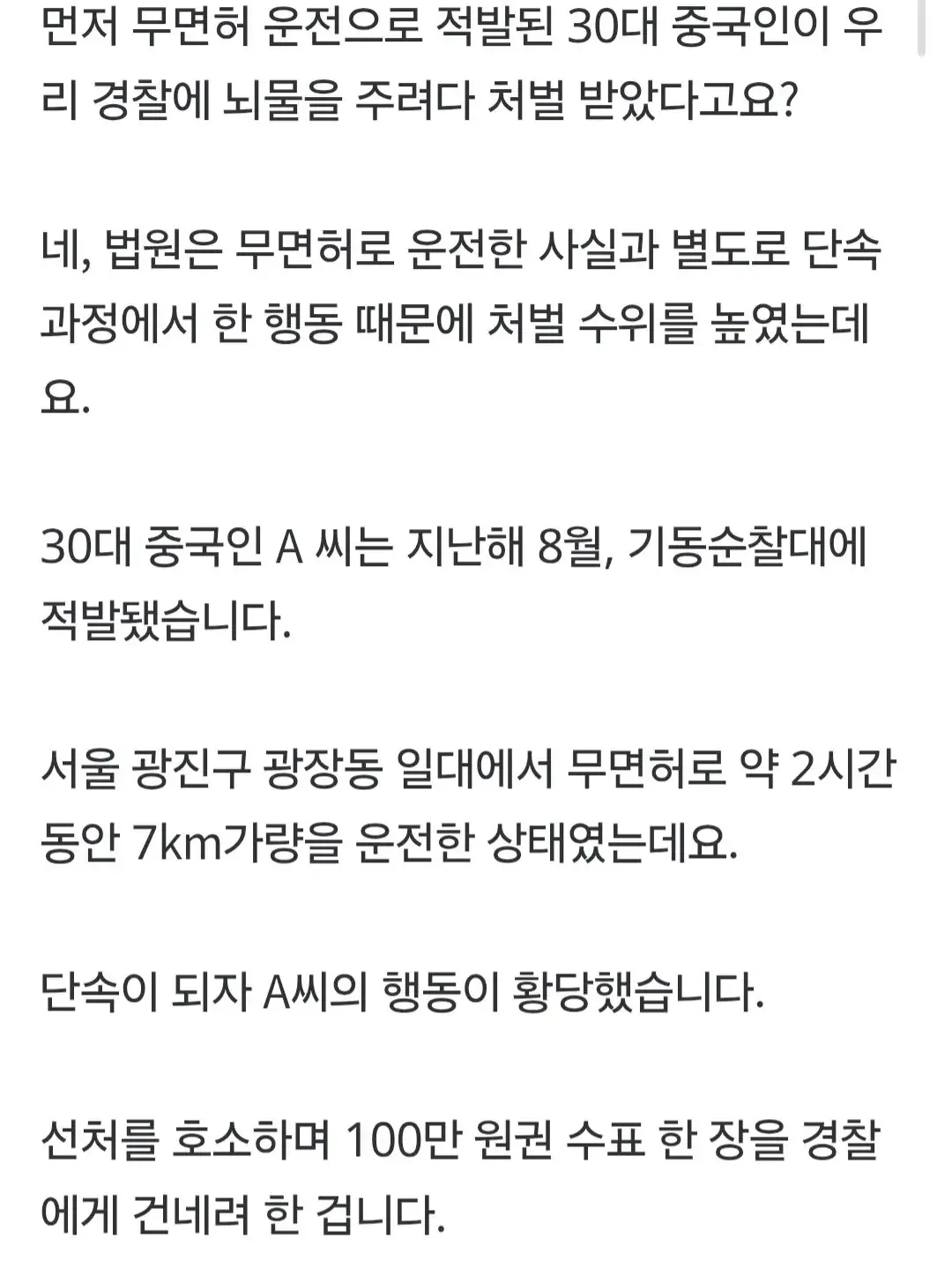 경찰에 수표 백만원 뇌물 건낸 중국인 ㄷㄷ