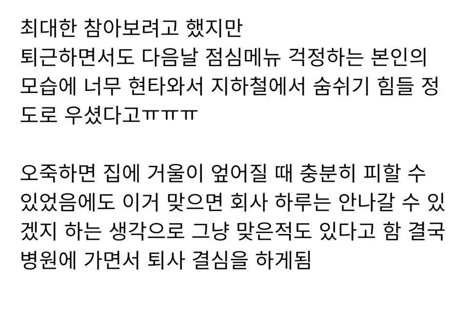 점심 메뉴 스트레스로 퇴사