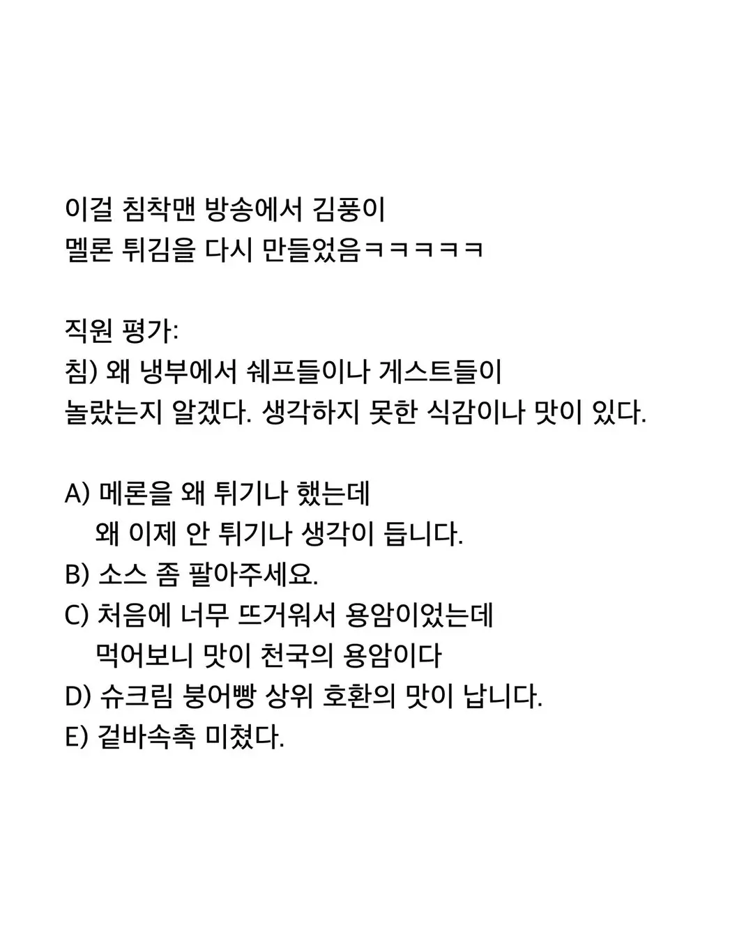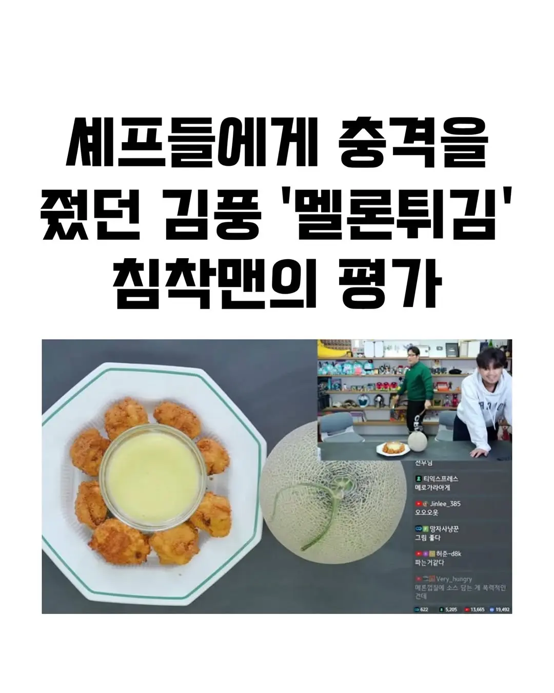 김풍이 다시 만든 멜론튀김을 평가하는 침착맨