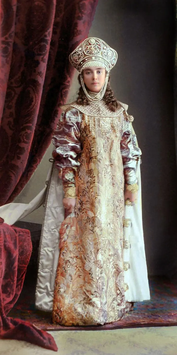 코스튬 컨셉은 표트르 대제(17세기 서구화를 주도한 군주) 이전의 정통 러시아 복식