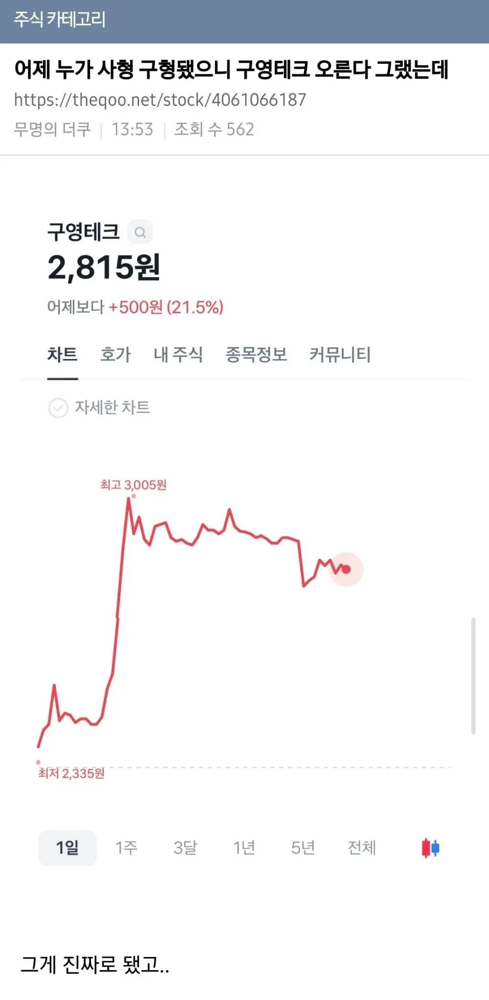 지금 '구영테크' 주가 검색해 보세요 ㅋㅋ