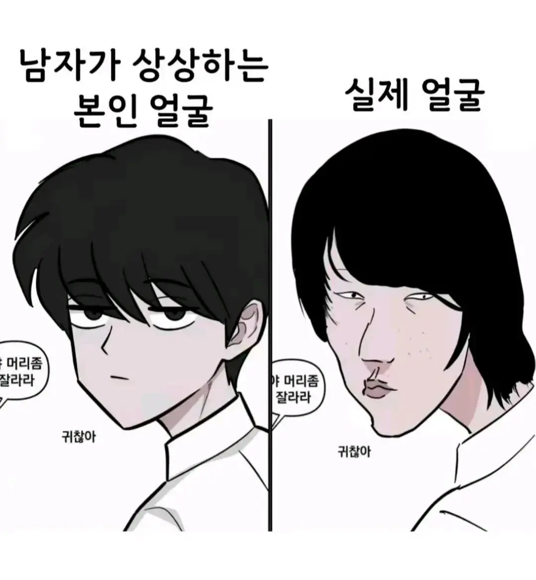 남자가 상상하는 본인 얼굴과 실제 얼굴